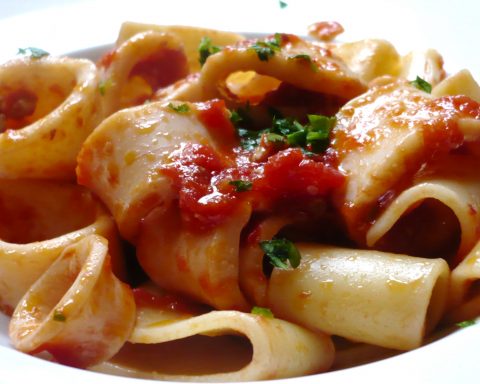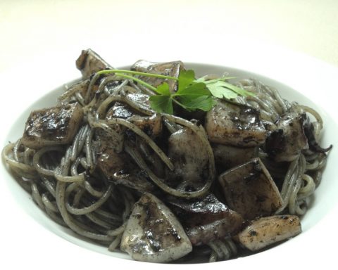 /Marisc i peix/PastaBaixa/Entre 30 i 60 minutsLa calamarata és una pasta amb forma de anells de calamars amb una salsa de calamars.