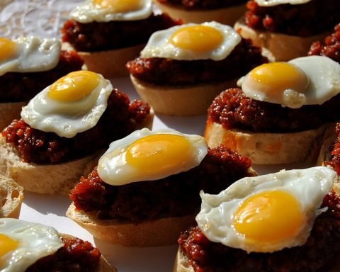 Barquetes d’ous de guàtlera i sobrassada amb mel i romaní