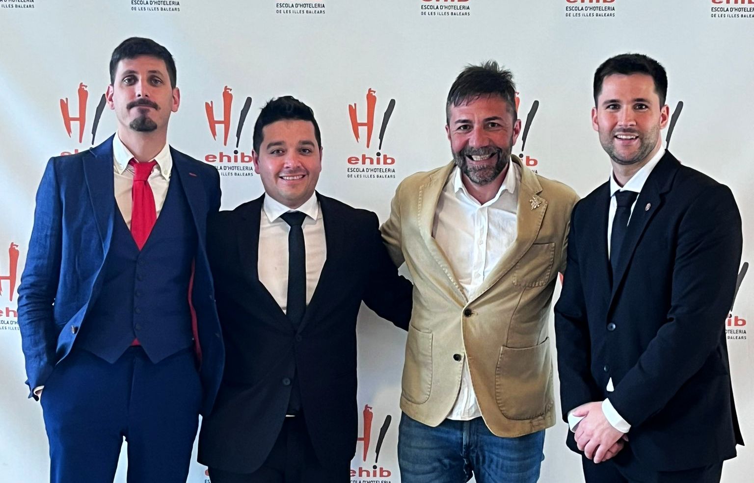 A la imatge, hi ha Brice Michaud, 2n classificat; Juanma Montes, 3r classificat; Daniel Arias, president de l’ABS; i Josep Juhé, Millor Sommelier de les Illes Baleares 2024.