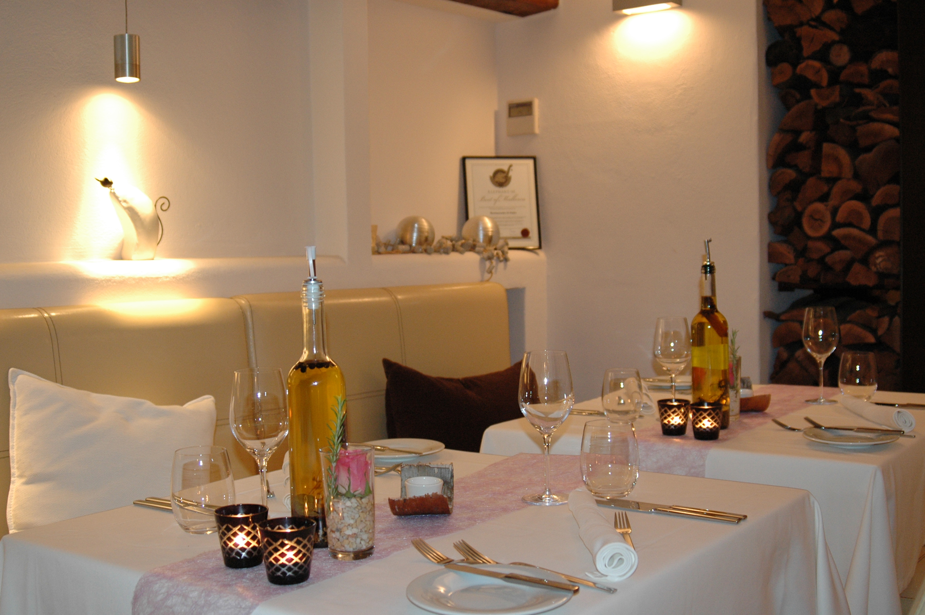Renoven la carta cada 3-4 setmanes. Nosaltres tinguerem el plaer de tastar-hi plats com un pamboli invertit amb carpaccio de gambes de Sóller i amanida de cogombre i pera, una ensalada d’ànec amb sorbet de mango i xili, i trilogia de vedella amb puré de julivert.