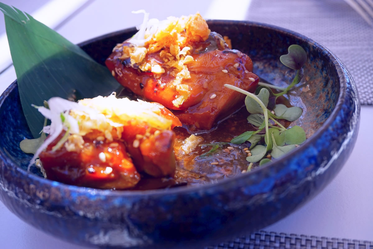 Algunes de les propostes de la carta són els nigiris de salmó flambejat i de vedella flambejada, el chasu ibèric (secret marinat amb salsa chasu, acompanyat d’albergínies torrades i sèmola gratinada), l’ensalada de pasta cha soba (amb te verd) acompanyada de gambes, pop, vieries i salsa de blat de moro dolç i salsa miso), a més d’un complet assortiment de sushis (rolls) i sashimi (com l’assortiment de 20 peces Sashimi Moriawase).