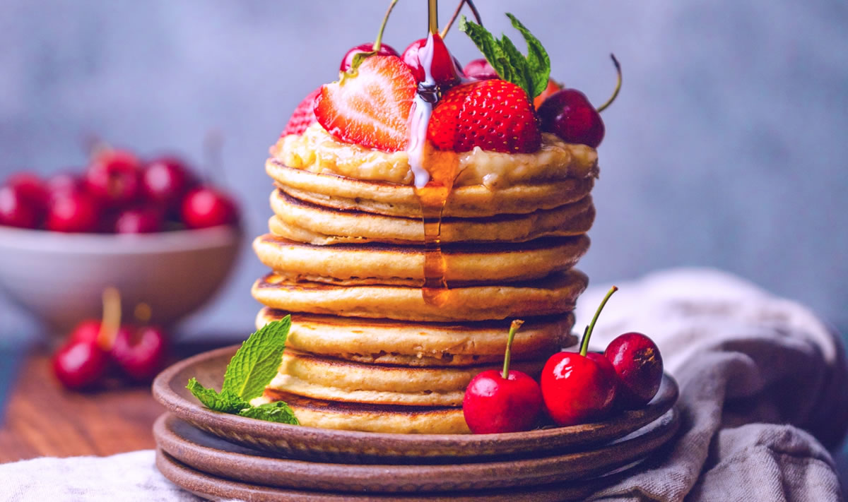 Amb aquesta recepta de pancake podeu gaudir d’un esmorzar amb un baix índex glucèmic. Hi hem substituït els aliments, com el sucre i la farina de blat, per aliments, com la fruita i la farina d’ametlla.