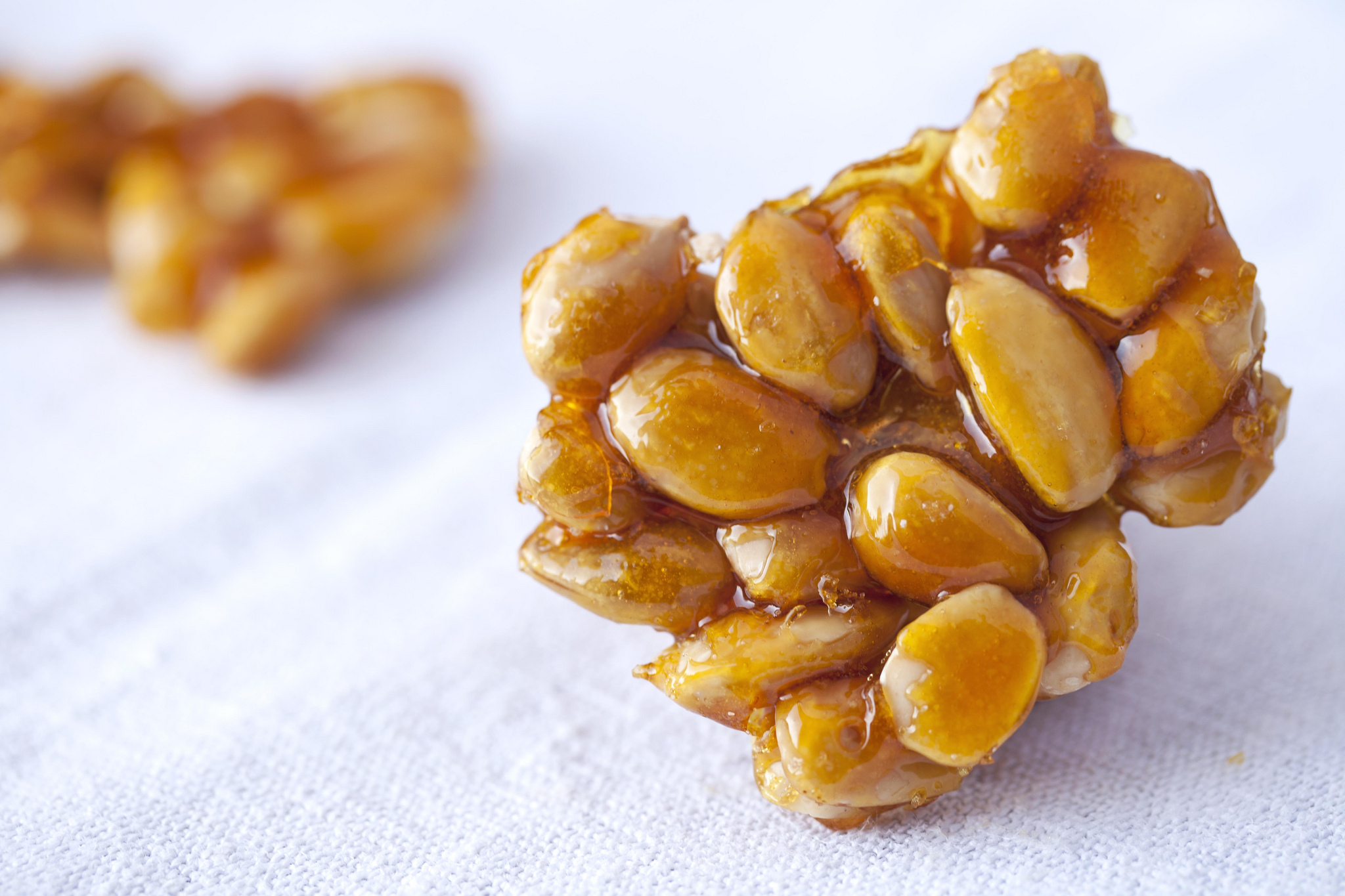 Posau el sucre al foc dins una paella. Untau el marbre de la cuina amb un poc d’oli (només una capa molt fina). Deixau coure el sucre, a foc mitjà, sense remenar (important!), però sacsant la paella de tant en tant. Quan ja s’hagi caramel·litzat (tendrà color de mel), abocau-hi tot d’una les ametlles torrades i remenau perquè es mesclin bé amb el caramel. Abocau la preparació damunt el marbre untat i amb una espàtula aplanau-la fins que sigui del gruix de mig dit. Aquesta operació ha de ser molt ràpida, perquè la preparació es solifica en molt poc temps i si no us afanyau ja serà massa dura no podreu donar-li forma.