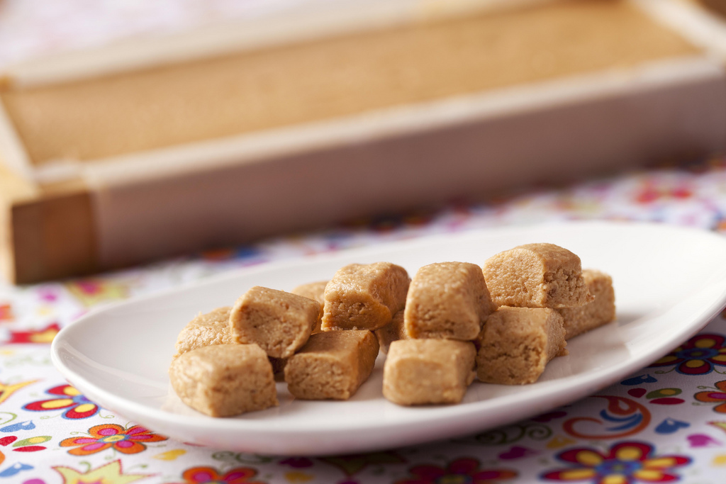Agafau dues capsetes de fusta per fer torró com la que surt a la fotografia (si no, podeu fer servir una capsa de llauna, o una carmanyola rectangular, el que tengueu més a mà) i folrau-les amb paper sulfuritzat de manera que, un cop plenes les capsetes, el paper basti per cobrir bé la superfície de la barra, perquè no ha d’estar en contacte directe amb l’aire i el paper ha d’absorbir l’oli que farà la pasta d’ametles.