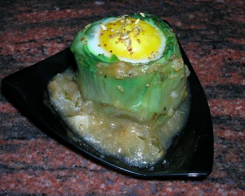 Barquetes d’ous de guàtlera i sobrassada amb mel i romaní