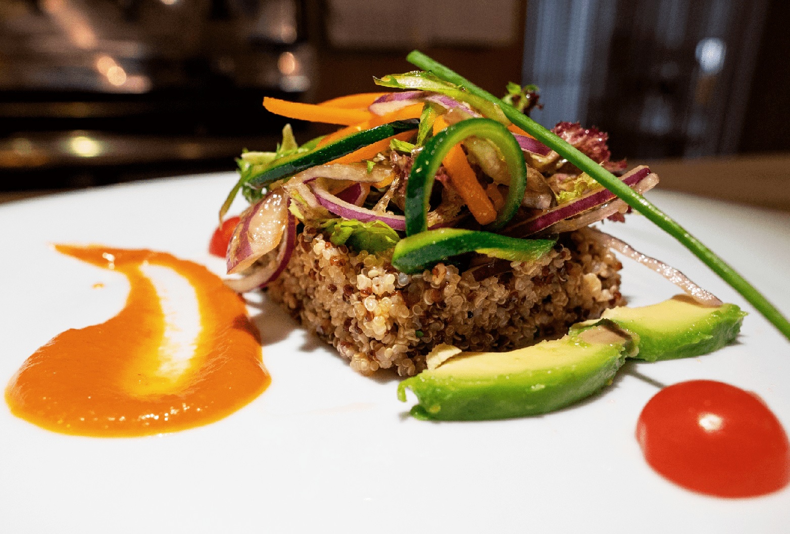 • Postres: Sopa de xocolata blanca amb gelatina de taronja i Grand Marnier