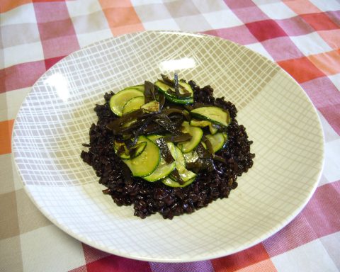 Per fer aquest arròs he utilitzat l'arròs venere, que al ser un arròs integral la seva cocció és llarga, d'uns 40 minuts