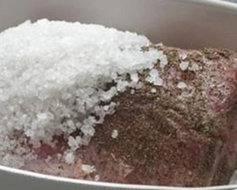 Primer de tot, posau en una palangana una capa de sal gruixada, hi posau el llom damunt i el cobriu de sal.
