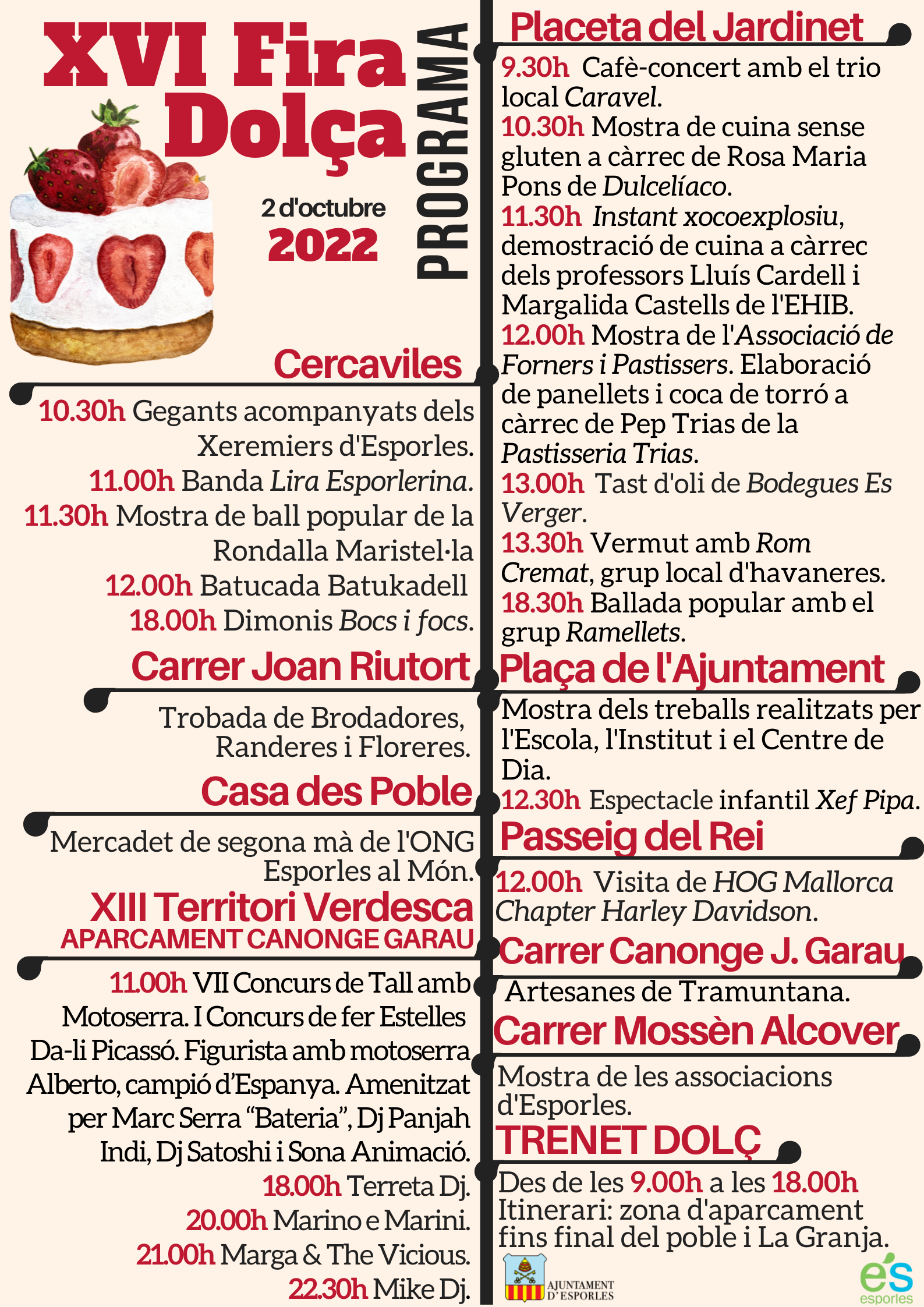 Clicau aquí per consultar el programa de la Fira Dolça d’Esporles 2022.