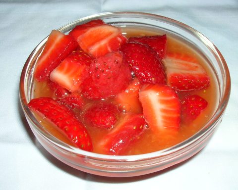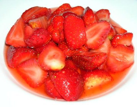 Tallar 500 g de maduixes en 2 o 4 trossos i barrejar-les amb 6 cullerades de sucre fins que comenci a fer-se