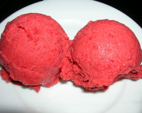 Congeleu un quilo de maduixes. Quan estiguin congelades, afegiu-hi 30 g de sucre i 100 ml de nata líquida. Tritureu-ho. Deixeu el