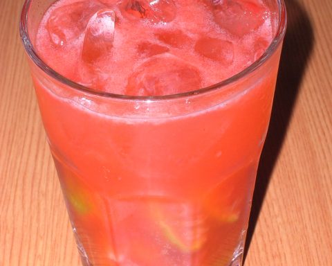 En un got, esclafar amb una mà de morter una llima tallada en vuit trossos i tres culleradetes de sucre. Acte seguit,