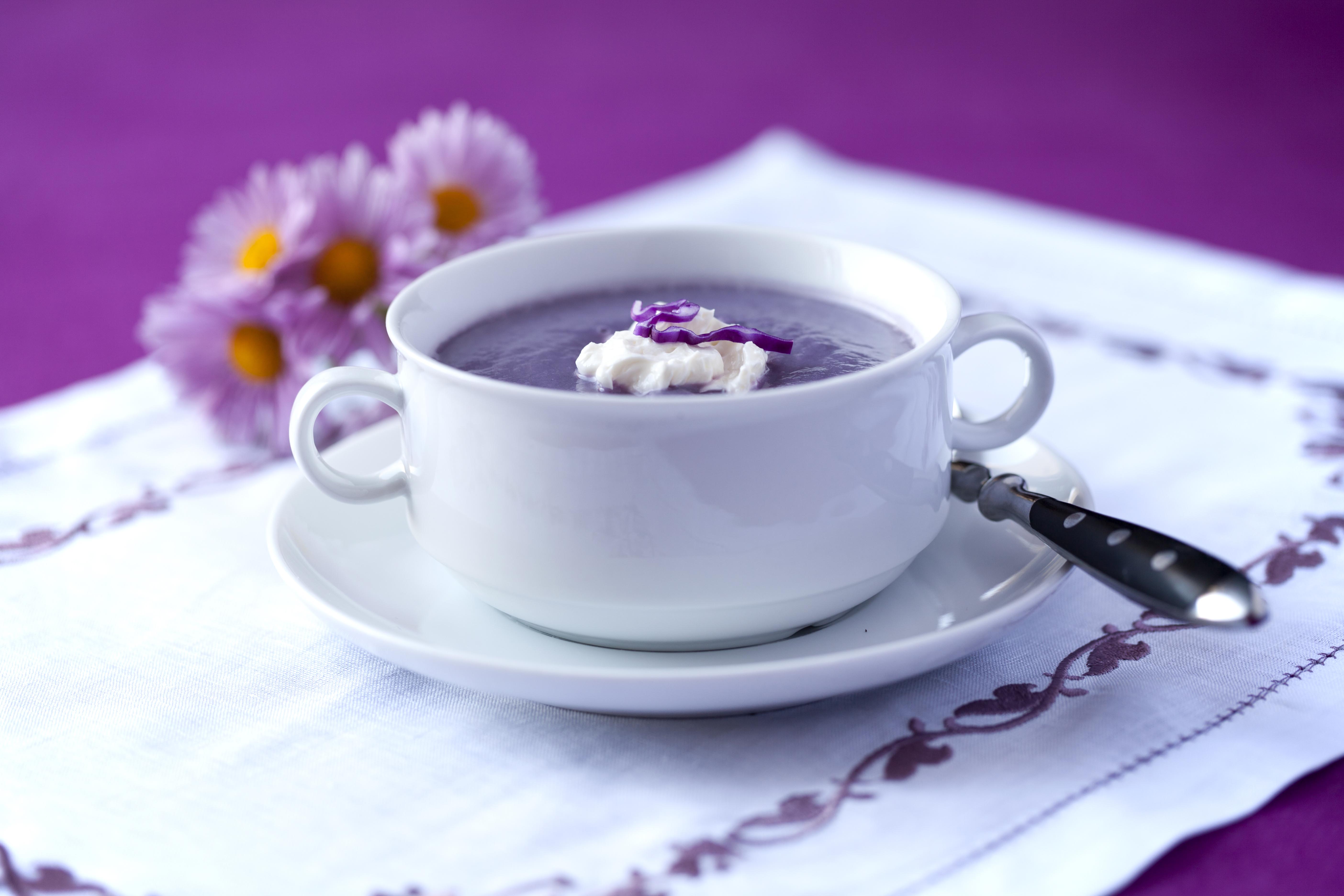 Serviu els plats amb una cullerada de formatge San Millán al centre del plat i ja tenim la recepta de crema de col lombarda enllestida.