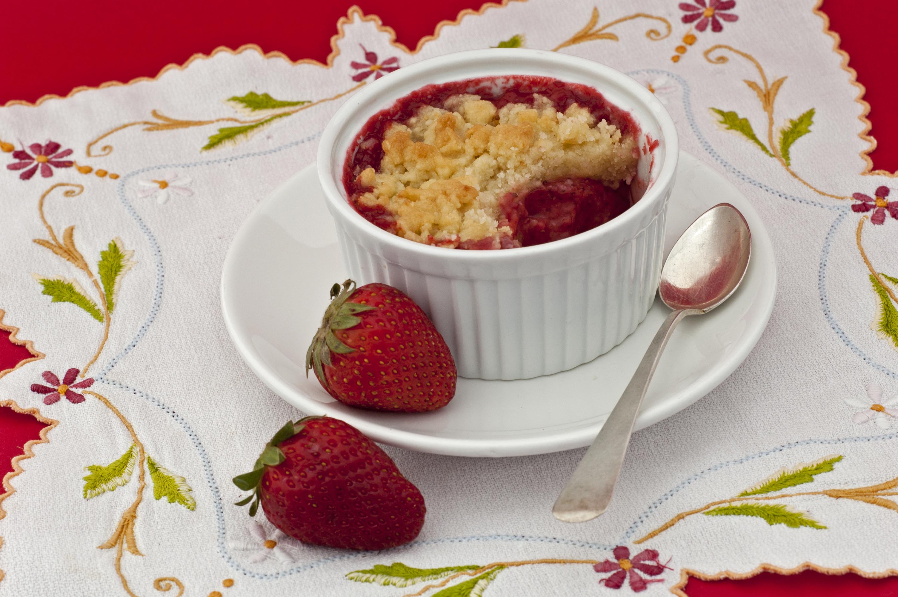 Untau un motlle (o motllets individuals) de ceràmica o de pyrex amb un poc de mantega. Abocau-hi les maduixes.