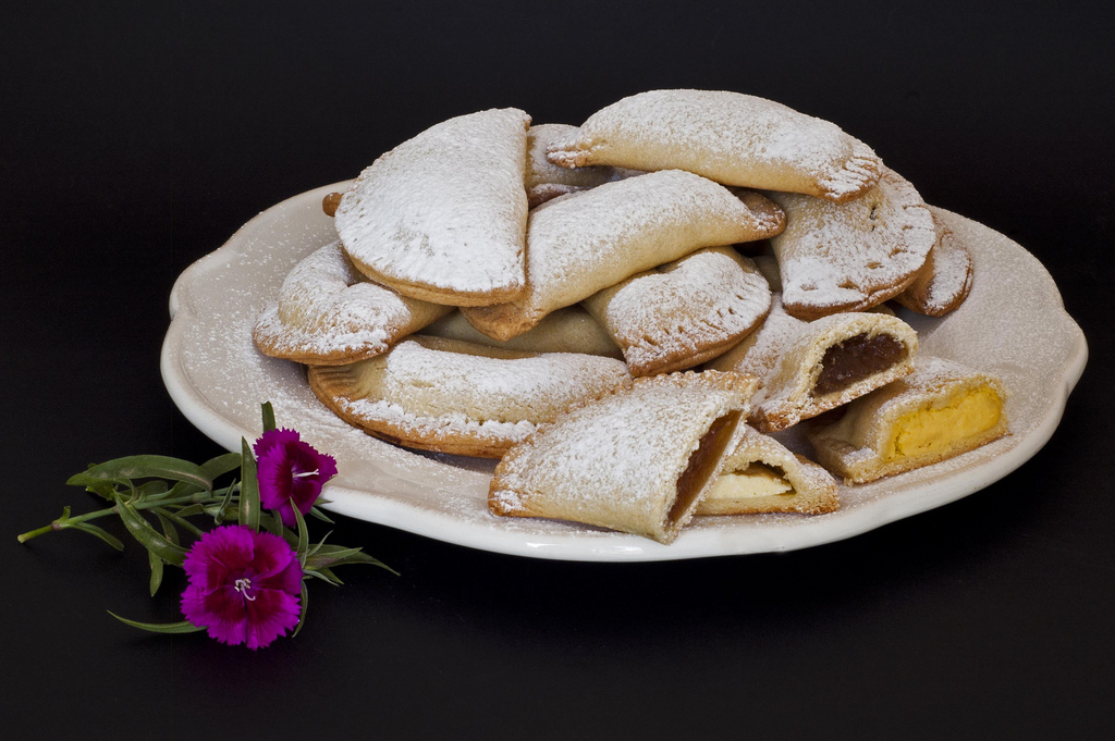 Per fer la pasta, posau dins un bol el saïm (no ha de ser fred de gelera, sinó a temperatura ambient) amb el sucre i mesclau bé amb les mans. Afegiu-hi ara els vermells d’ou, el suc de taronja, el xerès i l’oli i remenau fins que la preparació sigui homogènia. Anau incorporant la farina i pastant. No n’afegiu més fins que s’hagi begut l’anterior. Quan hagueu incorporat tota la farina us quedarà una pasta fina i manejable. Feis-ne una bolla i deixau-la reposar una hora a temperatura ambient (això es important!).