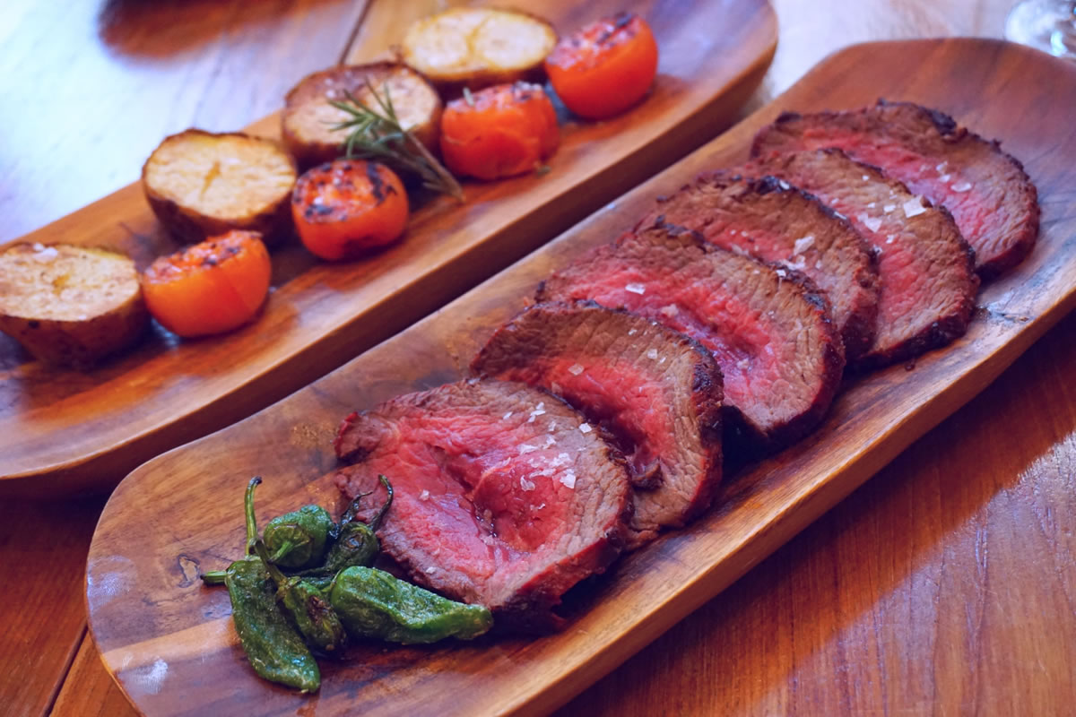 Altres plats que no us podeu perdre són la papillota de corball amb gambes, musclos i escopinyes a l’estil tai (amb llet de coco i curri verd), o el chateaubriand servit amb patata i tomàtiga torrades.