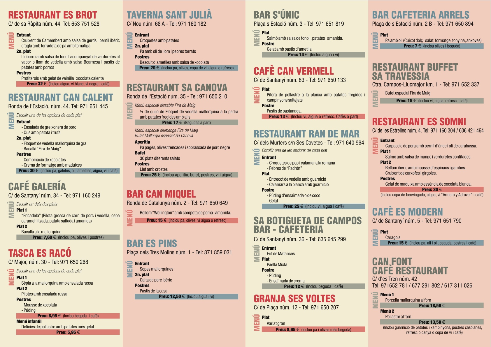 De fet, els dies 9 i 10, 18 restaurants de Campos ofereixen menús especials que podeu consultar a continuació.