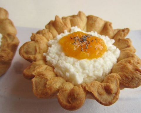 Per al bescuit: Posar la mantega, el sucre, la sal i la ratlladura de taronja en un bol i batre junts fins