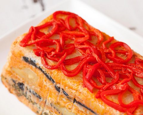 Netejau i tallau a làmines les albergínies i els carabassons. Salau-los i posau-los a degotar durant almenys ½ hora.